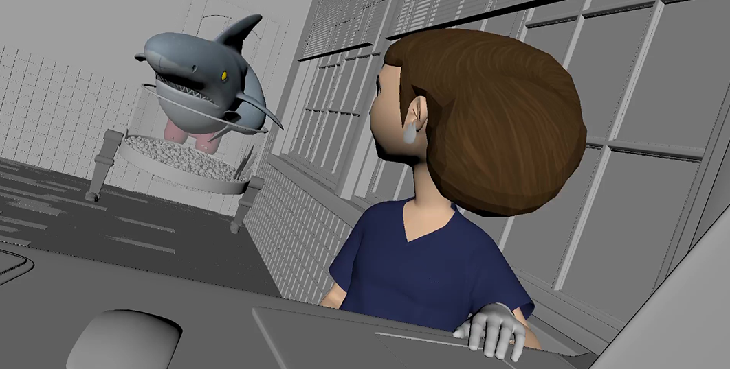 Шаркеспир отказывается жить в океане из-за растущего загрязнения и закисления океана, а вместо этого передвигается на своем двуногом мобильном роботе-аквариуме, который выполняет функцию очистки океанской воды.