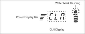 - После использования физиологического раствора очистите внутреннюю часть наконечника VarioSurg дистиллированной водой. Достаньте иглу из пакета с физиологическим раствором, вставьте иглу в контейнер (чашку и т.п.) с дистиллированной водой и нажмите кнопку [FLOW]. Не отпускайте кнопку около 3 секунд до запуска помпы (Автоматическая очистка). При автоматической очистке моргает значок Water (Вода). Индикатор на экране показывает оставшееся время чистки, каждые 3 секунды шкала индикатора уменьшается на одно деление.
